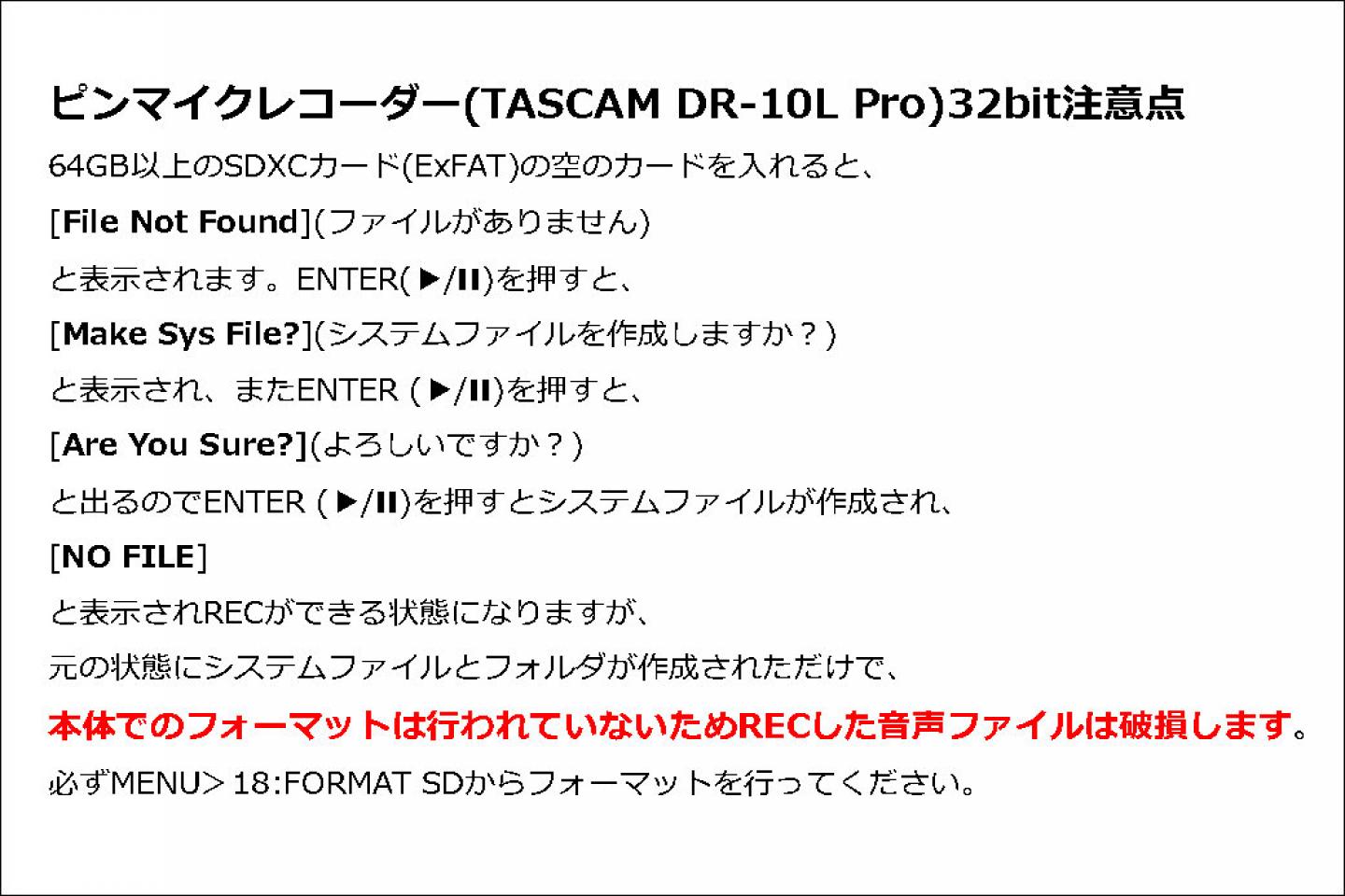 フォーマットせずに録音し、microSDカードをPCに認識させると音声データが破損します。