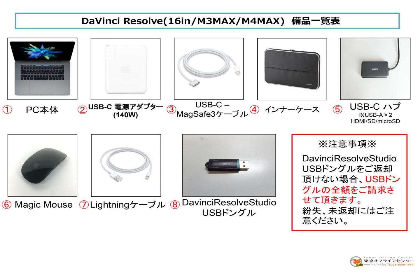 - Davinci resolve Studio USBドングルをご返却頂けない場合、全額でのご請求になりますので、予めご了承ください。