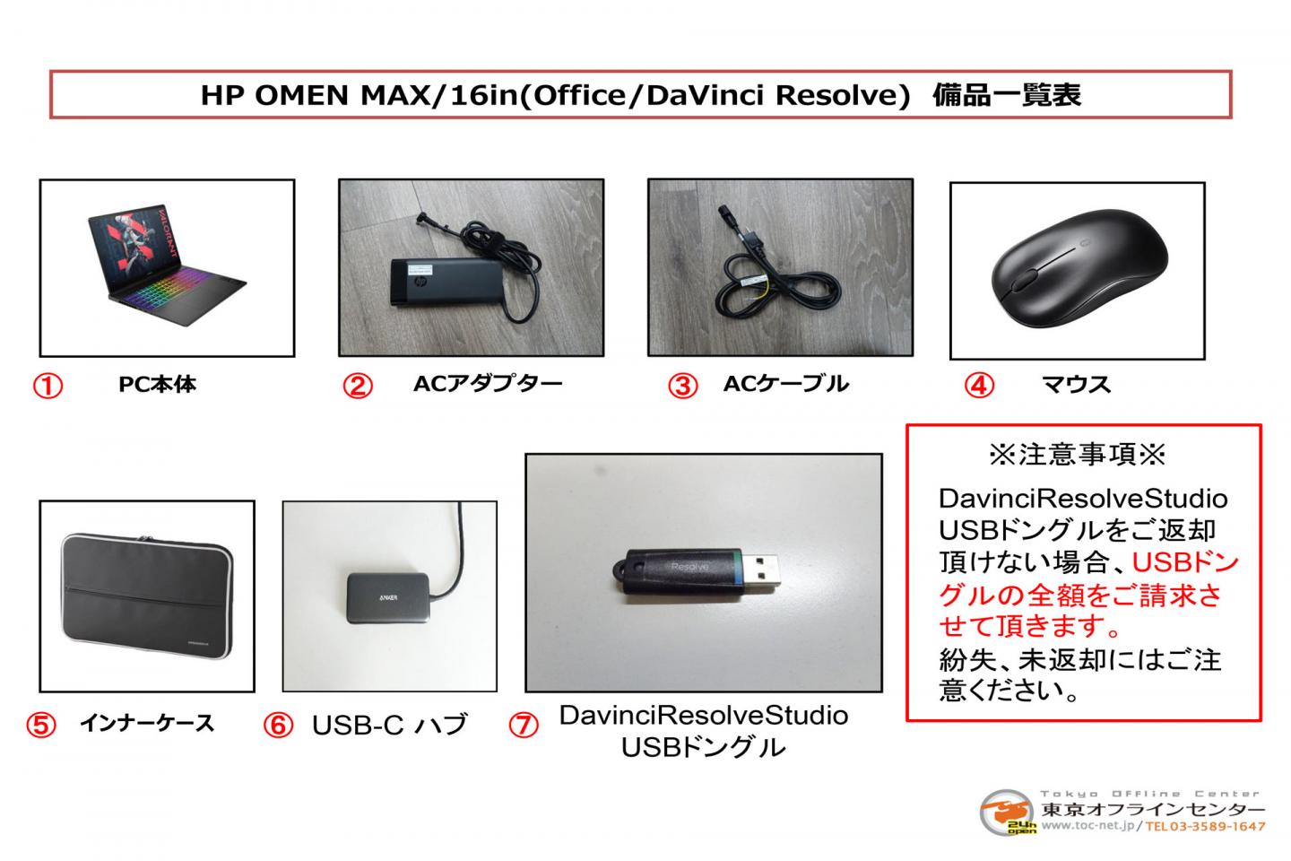 - Davinci resolve Studio USBドングルをご返却頂けない場合、全額でのご請求になりますので、予めご了承ください。