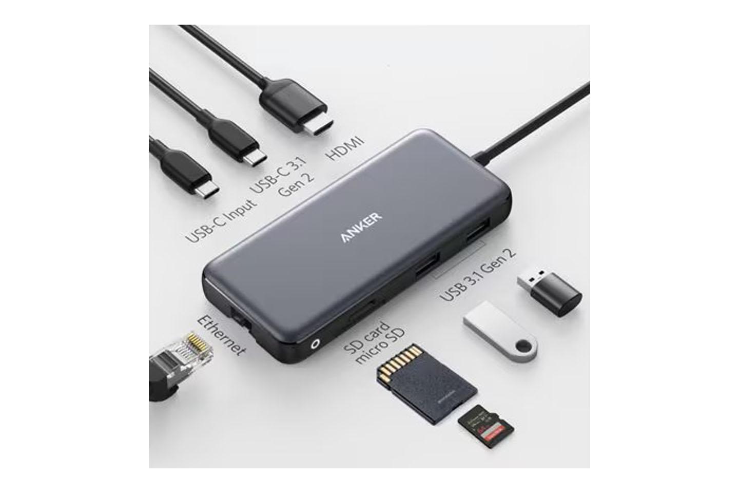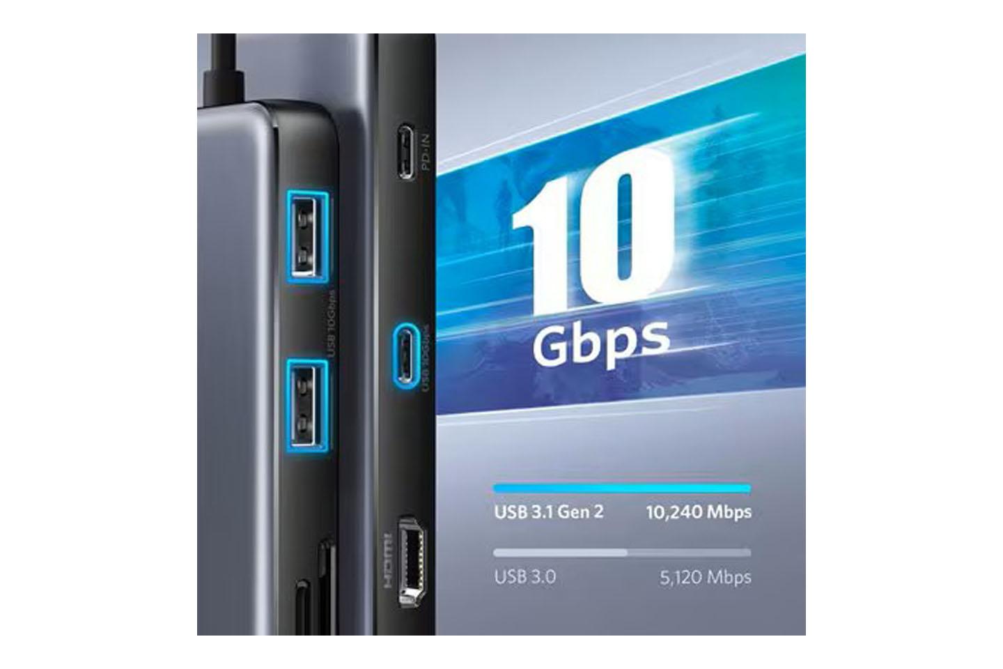 | 搭載ポート | ・データ転送用USB-A 3.1 Gen2ポート(最大10Gbps)※充電や映像出力に非対応×2 ・データ転送用USB-C 3.1 Gen2ポート(最大10Gbps)※充電や映像出力に非対応×1 ・PD対応USB-C充電ポート(最大入力100W / 最大*出力85W)※データ転送や映像出力に非対応×1 ・SDカードスロット(最大104MB/s)×1 ・microSDカードスロット(最大104MB/s)×1 ・イーサネットポート(最大1Gbps)×1 ・最大4K(60Hz)対応HDMIポート×1 |